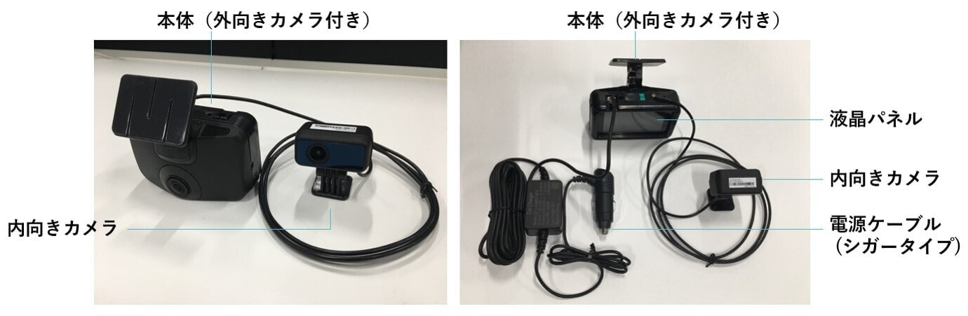 - 内向きカメラ:フロントガラス上部、もしくはダッシュボード上面に設置