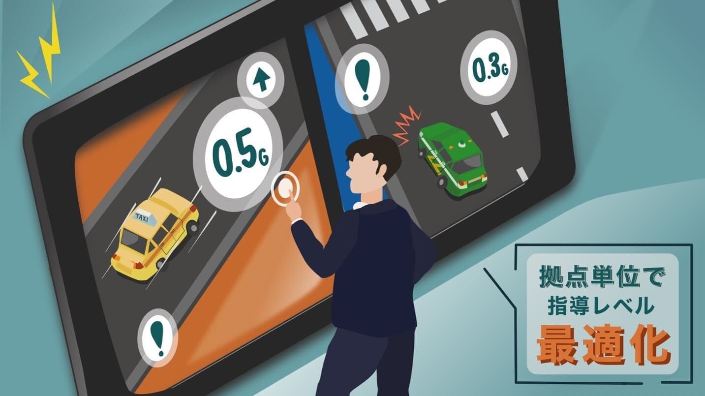 事故が目立っている拠点では、その前兆に当たるヒヤリハットやリスク運転が多くなりがちです。いきなり全てを0にするというのは難しいという場合でも、検出基準を変更することでまずは特に危険度が高いと言えるシーンから着実に対処していく、といった指導の最適化を行うことができます。拠点ごとに変更ができるので、事故が相対的に少ない拠点に対してはさらに高い目標を目指すといったようなカスタマイズも可能です。